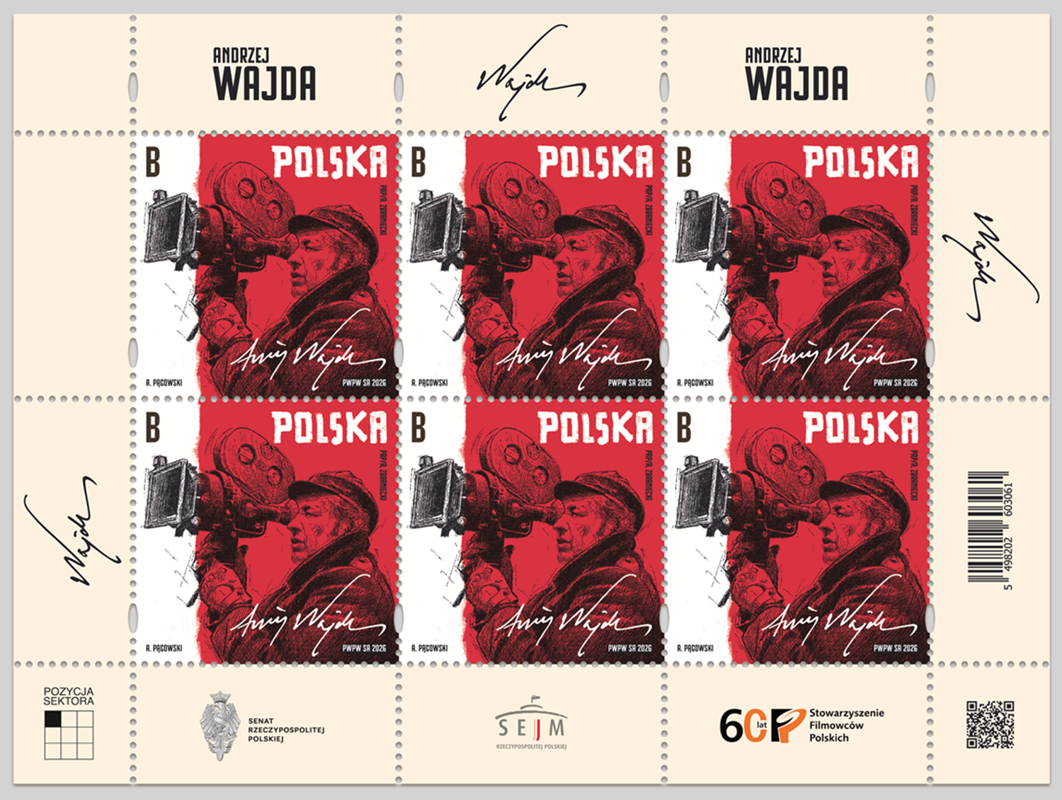 Arkusz znaczków na 100. rocznicę urodzin Andrzeja Wajdy