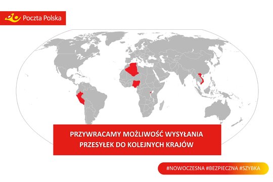 Poczta Polska wznawia również możliwość wysyłki listów zwykłych i poleconych oraz pocztowych paczek pocztowych priorytetowych adresowanych do: Algierii, Nigerii oraz Rwandy. Natomiast do Peru będzie można wysłać list zwykły oraz polecony.