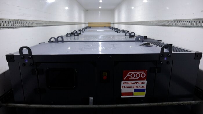 Ciężarówka Poczty Polskiej zawiozła do stolicy Ukrainy dwa rodzaje agregatów. Mniejsze z nich będą wykorzystywane między innymi przez szkoły, przedszkola i ośrodki zdrowia, a duże trafią do szpitali.