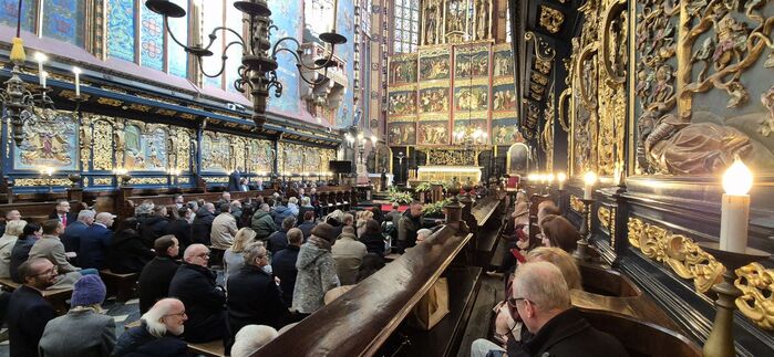 W wydarzeniu wzięli udział Pocztowcy z całego kraju, ich rodziny, przedstawiciele Zarządu i Rady Nadzorczej Spółki oraz liczni goście. W wyjątkowej oprawie liturgicznej, podczas której zaprezentowano okolicznościowy znaczek „800 lat Parafii Mariackiej w Krakowie”, wybrzmiały życzenia dla pracowników i słowa uznania dla ich służby.