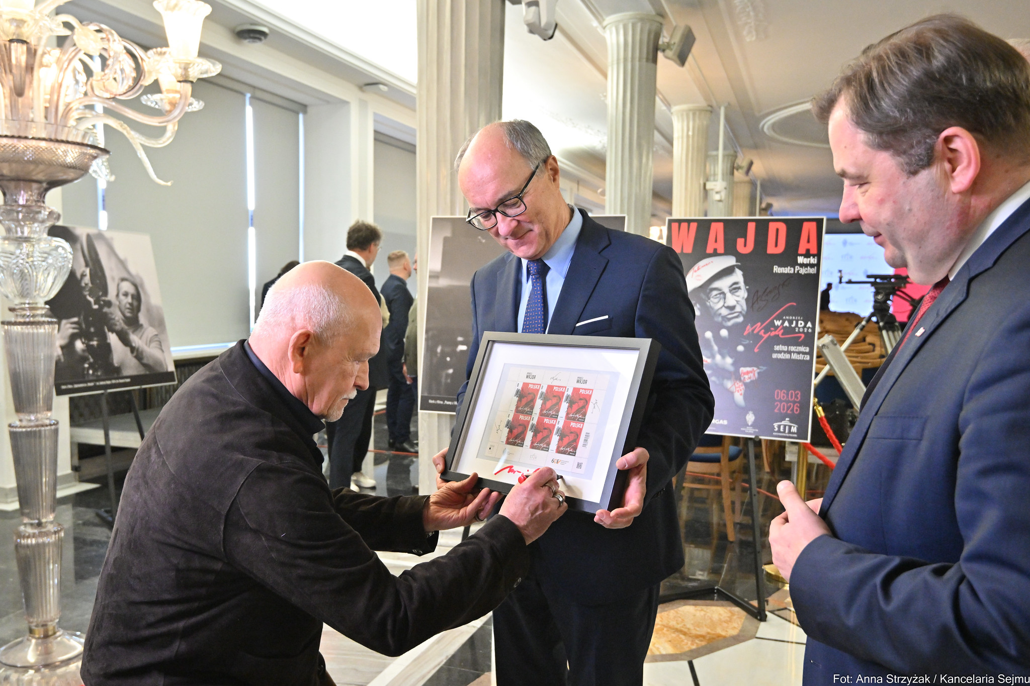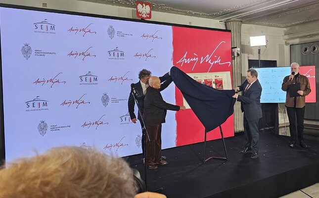 Marszałkowie Sejmu i Senatu, przedstawiciele rządu, parlamentarzyści, artyści, dziennikarze i przedstawiciele biznesu uczcili w Sejmie 100. rocznicę urodzin wybitnego reżysera Andrzeja Wajdy. Podczas uroczystej konferencji wystąpił prezes Poczty Polskiej Sebastian Mikosz. Przedstawił projekt wyjątkowego znaczka autorstwa Andrzeja Pągowskiego, który zostanie wyemitowany z okazji tej ważnej dla polskiej i światowej kultury rocznicy.