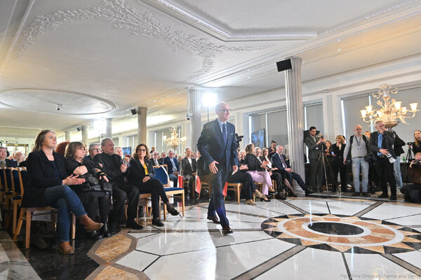 - To dla nas zaszczyt, że jesteście tutaj Państwo w związku z setnymi urodzinami Andrzeja Wajdy. Nie znałem Mistrza, ale wychował mnie XX wiek i nie wyobrażam sobie swojego dojrzewania bez filmów Wajdy. To człowiek, który potrafił i kształtował całe pokolenia. Mało jest takich ludzi, mało ma Polska autorytetów... Andrzej Wajda jest wielkim moralnym autorytetem naszego narodu, niezależnie od tego, kto na kogo głosuje i dlatego chciałem, by Sejm to uczcił i oddał hołd wielkiemu twórcy - powiedział Marszałek Sejmu Włodzimierz Czarzasty.